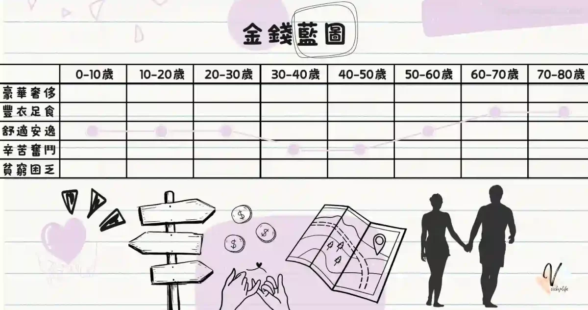 每個人想像中的「藍圖」是不同的,人生藍圖是指人生狀態的預想,而金錢藍圖就是金錢狀態的預想,所以伴侶間也可以一起畫出以下的金錢藍圖,看看是否有重疊或差異之處?透過畫出的藍圖,可以更理解彼此,可以說出自己期望的財務狀態,相互確認,再朝著將藍圖一致的目標去做修改,希望能夠一起調整為目標重疊狀態,朝著同樣的方向去努力前進,作著認為認真看待並規劃「金錢藍圖」,是夫妻應該要做的事情。