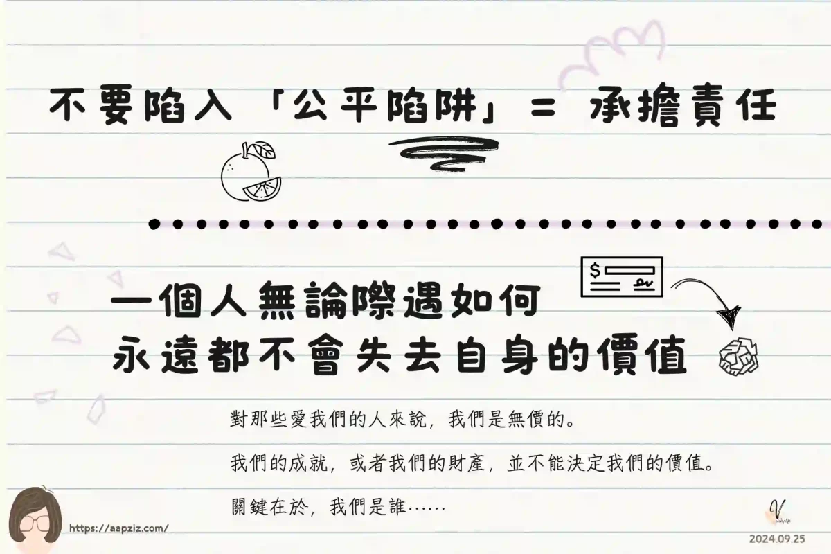 「人生不可能公平,不要陷入「公平陷阱」,而是必須負起責任,與其抱怨,還不如專注在自身的優勢。」