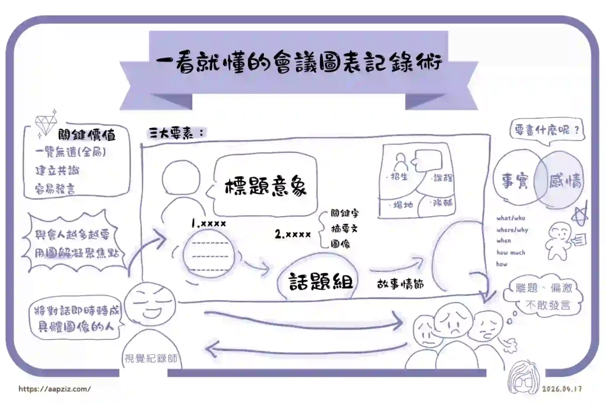 老師之前常提到的「視覺紀錄」,就是用圖解的方式,把會議內容整理下來。