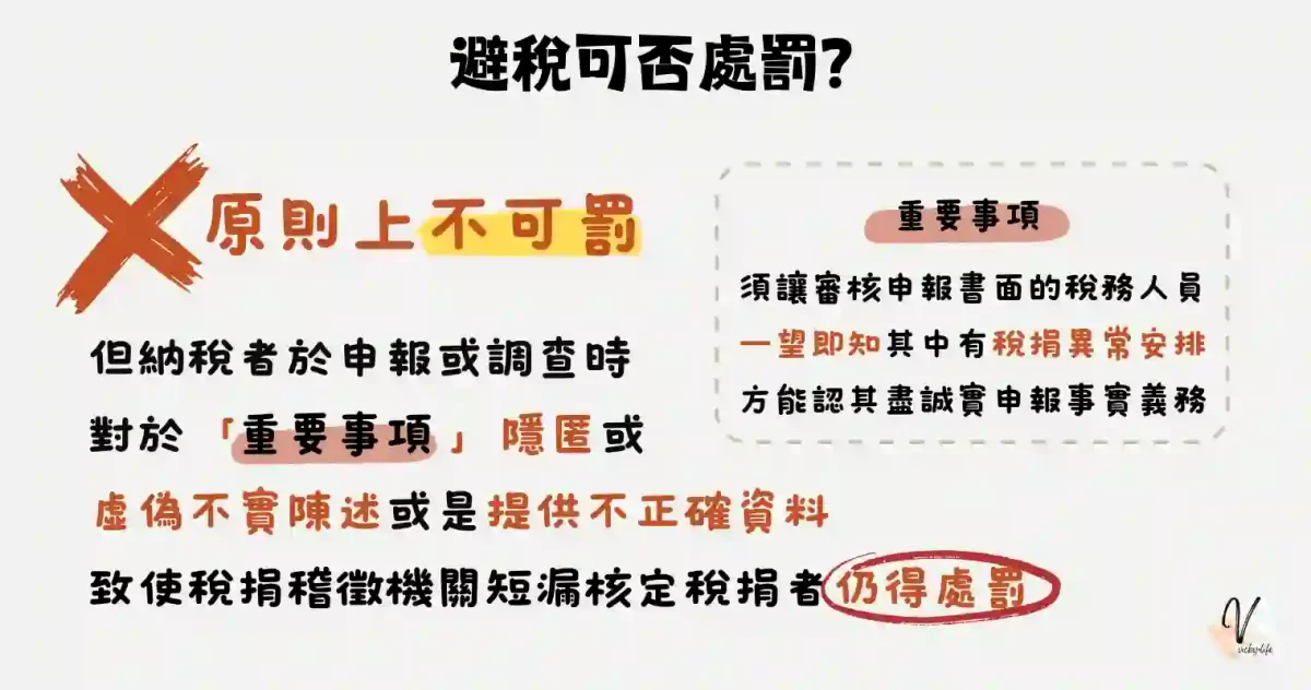 看了上述的的案例發現我們常見的狀況都屬避稅,不免擔心避稅會被處罰嗎?詳細可參考下圖: